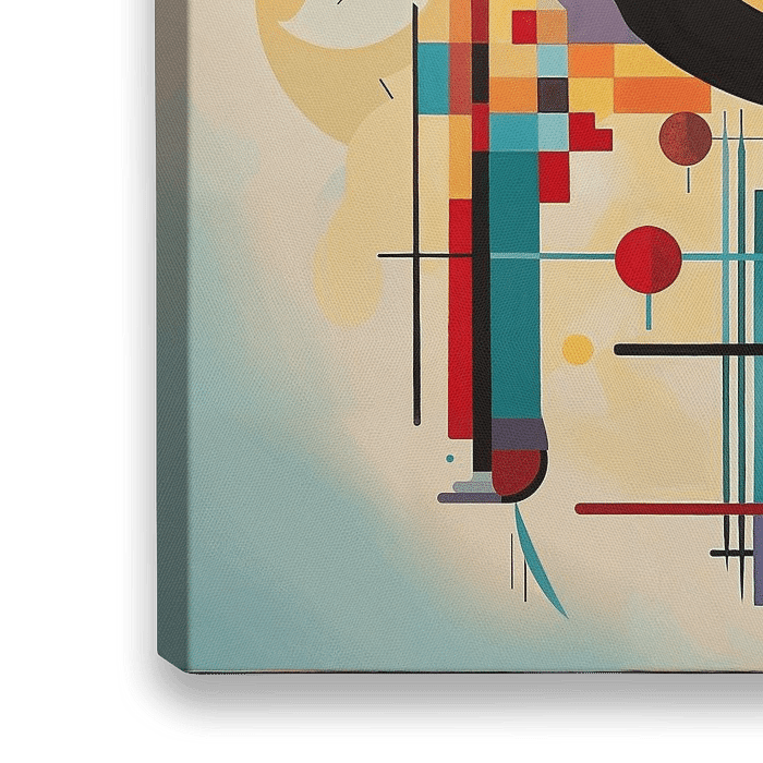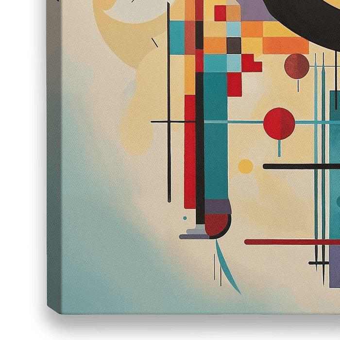 Dit werk is een door AI gegenereerd beeld in de stijl van Wassily Kandinsky, passend bij Bauhaus.
