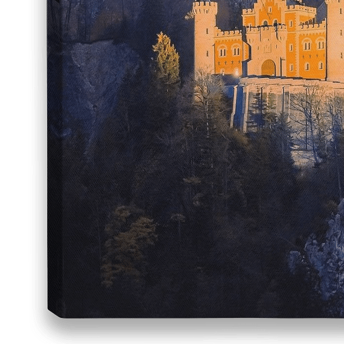 Koop de foto Kasteel Neuschwanstein verlicht bij zonsondergang, Beieren, Duitsland van Henk Meijer Photography als print op canvas, aluminium dibond, (ingelijste) fotoprint, behang en ArtFrame. Voor jou op maat geprint in Fine-Art kwaliteit.