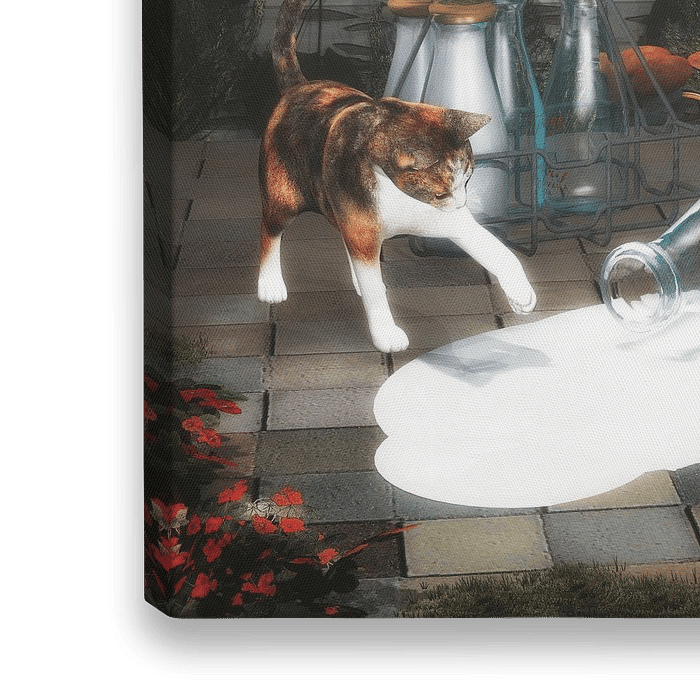 Koop dit bloemen kunstwerk Katten – Kat die melk ontdekt van Jan Keteleer op canvas, aluminium dibond, (ingelijste) fotoprint, behang en ArtFrame, op maat geprint in Fine-Art kwaliteit.