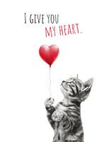 Deze kat weet hoe hij harten moet laten smelten! Met zijn liefdevolle blik en rode hartballon zal hij niet alleen kattenfans doen glimlachen. Perfect als cadeau voor Valentijnsdag, een verjaardag of gewoon om iemand blij te maken. Het moderne, minimalistische ontwerp maakt indruk met zijn fijn getekende zwart-wit illustratie…