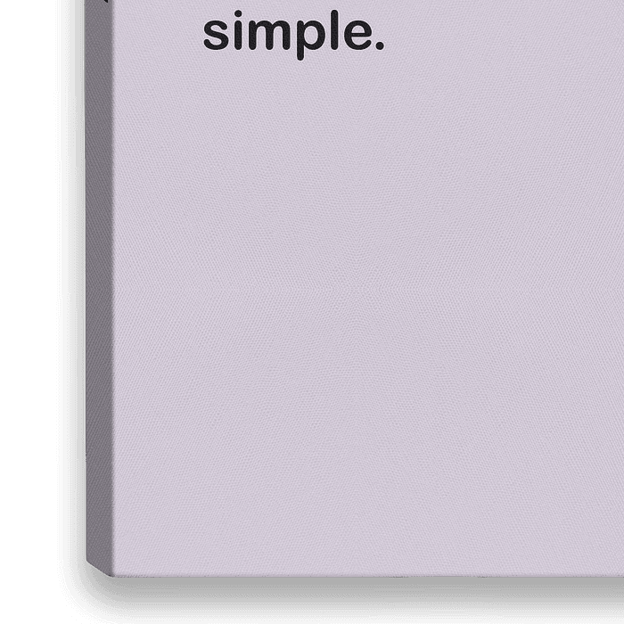 Minimalistische quote, zwarte letters op een lila achtergrond.