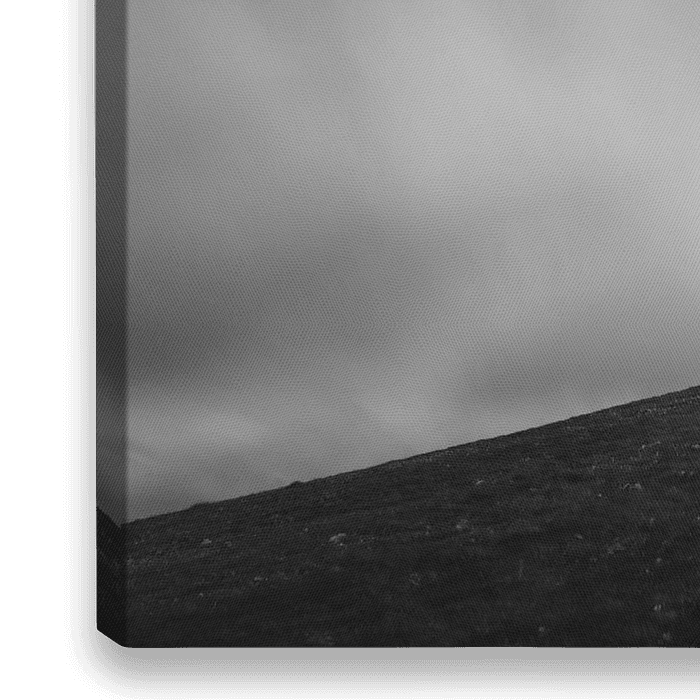 Zwart-wit beeld van een klein (kunst) kerkje, gebouwd op een heuvel onder een wolkenhemel, genomen met lange sluitertijd om de beweging in de lucht te accentueren. Het is een beeld dat het geloof kan tonen als baken in roerige tijden.