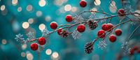 Een vleugje wintermagie ontvouwt zich in verfrissende blauwtinten, terwijl helderrode bessen en delicate sneeuwvlokken harmonieus samen dansen. De zachte lichtjes op de achtergrond geven het arrangement een feestelijke warmte die perfect past in elke woonkamer. Een prachtig accent om gezelligheid en vrolijkheid te brengen in het…