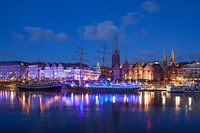 Koop de foto Kerstmarkt Schlachtezauber Schlachte met Weser, Martinikirche en Domtuermen bei Abenddaemmerung, Bre van Torsten Krüger als print op canvas, aluminium dibond, (ingelijste) fotoprint, behang en ArtFrame. Voor jou op maat geprint in Fine-Art kwaliteit.