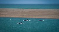 Dit drietal orka's was op pad door een soort parallel-kanaal aan de Argentijnse kust.