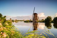Gefotografeerd vlak na zosopkomst. Het goudgele licht zorgt voor een fraaie sfeer. Het riet stond prachtig in het lied. De molens gaf een prima decor.