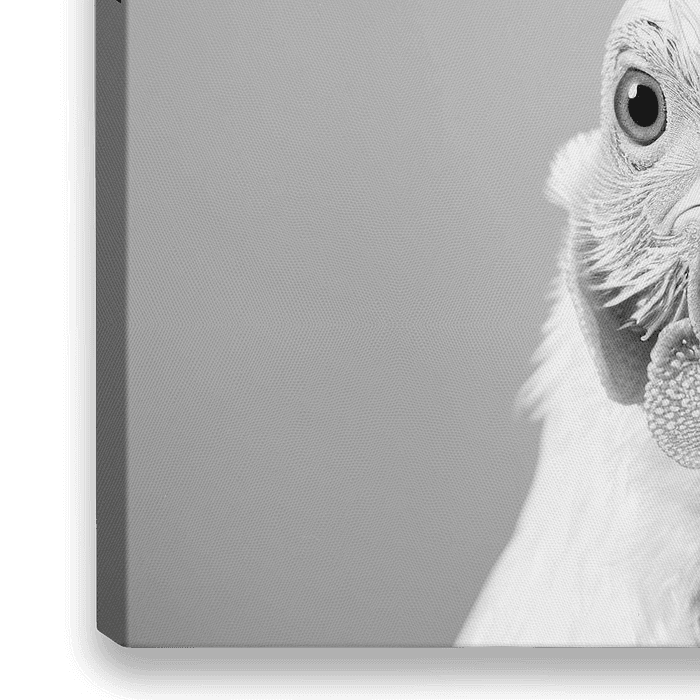 Deze indrukwekkende zwart-witfoto toont het fascinerende portret van een kip in indrukwekkend detail. De minimalistische compositie en duidelijke contrasten benadrukken de fijne structuren van de veren en de expressieve ogen, waardoor de kip een unieke aanwezigheid krijgt. Dit kunstwerk is perfect voor liefhebbers van landelijke…