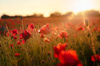 Koop de foto Klaprozen bij zonsondergang in veld van Fotografiecor .nl op canvas, aluminium dibond, (ingelijste) fotoprint, behang en ArtFrame, op maat geprint in Fine-Art kwaliteit.