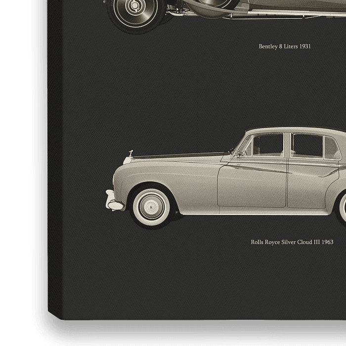Koop dit digital art kunstwerk Klassieke Britse auto's van Jan Keteleer als reproductie op canvas, aluminium dibond, (ingelijste) fotoprint, behang en ArtFrame, op maat geprint in Fine-Art kwaliteit.