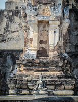 Klein Boeddhabeeld voor de tempelruine van Sukhothai, Thailand van Rietje Bulthuis