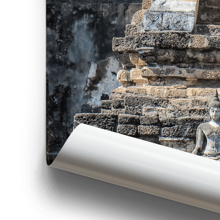 Koop de foto Klein Boeddhabeeld voor de tempelruine van Sukhothai, Thailand van Rietje Bulthuis op canvas, aluminium dibond, (ingelijste) fotoprint, behang en ArtFrame, op maat geprint in Fine-Art kwaliteit.