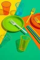 Kleurexplosie – Vrolijke Compositie van Plastic Servies