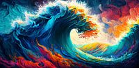 Dit abstracte, kleurrijke schilderij weet op een unieke manier de kracht en energie van wilde hoge golven vast te leggen. De schilder maakte gebruik van een explosie van kleuren, die samen een beeld vormen van de immense kracht van de natuur. Het is een prachtig kunstwerk aan de muur, dat iedereen die het bekijkt, zal verbazen en inspireren. Abstracte schilderkunst is zo mooi aan de muur omdat het de verbeeldingskracht van de toeschouwer aanspreekt en hen uitnodigt om zelf interpretaties te geven aan het kunstwerk.