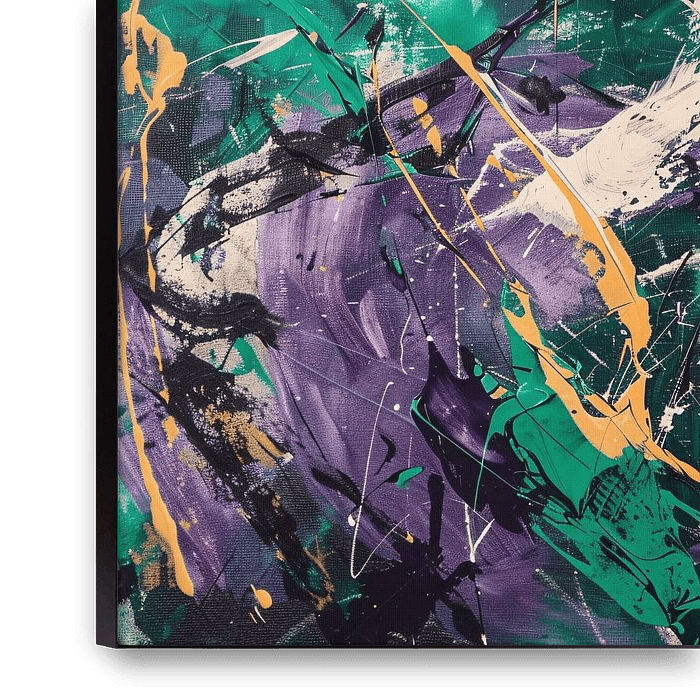 Dit prachtige schilderij is een explosie van kleuren en energie, perfect voor liefhebbers van moderne kunst. Met zijn dynamische lijnen en levendige kleurenschema brengt dit kunstwerk elke ruimte tot leven. De groene, paarse, witte, zwarte en gele tinten creëren een intrigerende compositie die de aandacht trekt en vasthoudt. Ideaal voor…