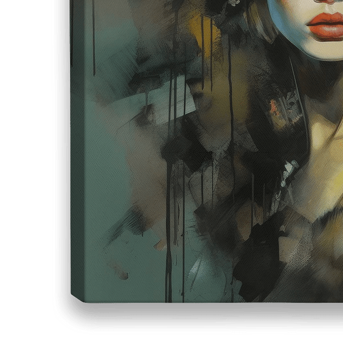 Kleurrijk en modern portret van een jonge vrouw met veel dynamiek in het beeld door de gebruikte techniek. Prachtig in groot formaat aan je muur!