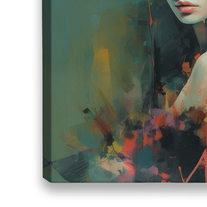 Kleurrijk en modern portret van een jonge vrouw met veel dynamiek in het beeld door de gebruikte techniek. Geïnspireerd door Flamenco danseressen. Prachtig in groot formaat aan je muur!