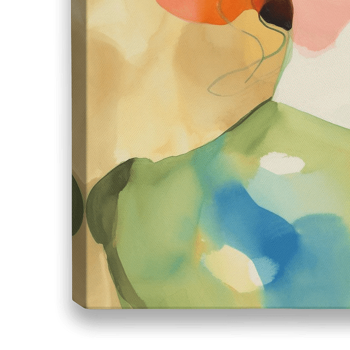 Kleurrijke illustratie digitaal aquarel. Portret van een jonge vrouw met fleurige kleding en bloemen in het haar. Kies zelf het formaat en materiaal voor dit leuke en speels werk. Voor wie van kleur houdt!