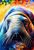 Koop dit portret Kleurrijk portret van een Zeeolifant van Whale & Sons op canvas, aluminium dibond, (ingelijste) fotoprint, behang en ArtFrame, op maat geprint in Fine-Art kwaliteit.