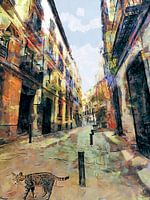 Breng de levendigheid van de stad in huis met "Kleurrijke ontmoeting," een kunstwerk voor aan de muur dat je meeneemt naar een historische straat waar een kat je begroet. Dit unieke stuk is het resultaat van de samensmelting van twee foto's: een van een sfeervolle straat in Madrid en de andere van een nieuwsgierige kat in Athene. Samen…