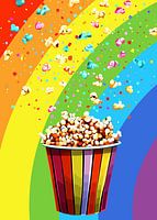 Over ‘Kleurrijke popcornscène met regenboogachtergrond’ van Pixelbull Design