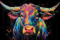 Koop dit koeien kunstwerk Kleurrijke stier van ARTemberaubend op canvas, aluminium dibond, (ingelijste) fotoprint, behang en ArtFrame, op maat geprint in Fine-Art kwaliteit.
