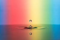 Gemaakt met een macrolens voor optimale scherpte. Kleuren op de achtergrond reflecteren in de druppel