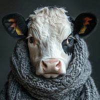Koop dit koeien kunstwerk Koe gekleed voor de winter van Ton Kuijpers op canvas, aluminium dibond, (ingelijste) fotoprint, behang en ArtFrame, op maat geprint in Fine-Art kwaliteit.