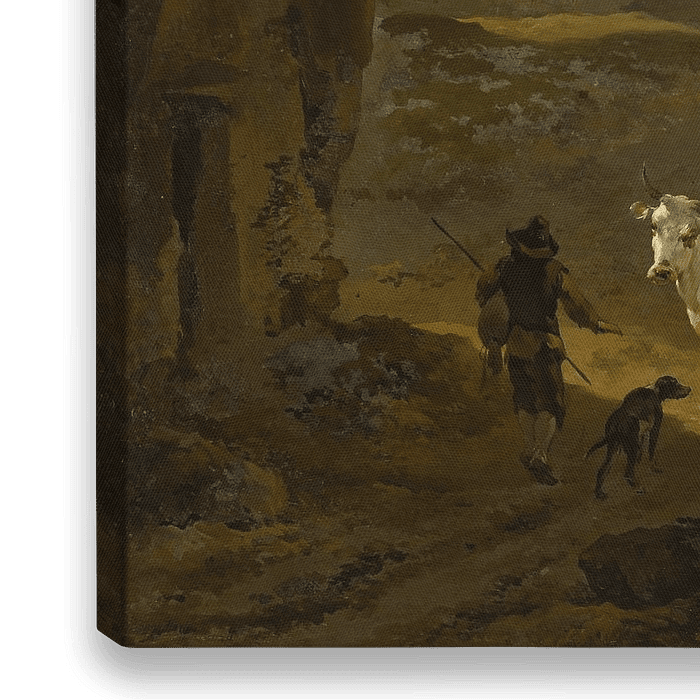 Koop Koeherders in een grot, Nicolaes Berchem als reproductie op canvas, aluminium dibond, (ingelijste) fotoprint, behang en ArtFrame, op maat geprint in Fine-Art kwaliteit.