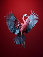 Met vleugels gespreid en nek gestrekt, staat de sierlijke kraanvogel klaar om te vliegen. Zijn majestueuze houding belichaamt gratie en kracht. In een oogwenk verheft hij zich van de grond en stijgt op in de lucht, als een poëtische symfonie van vrijheid en schoonheid.