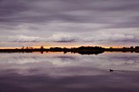 Verstild spiegelend wateroppervlak in het natuurgebied boven Terherne, Friesland