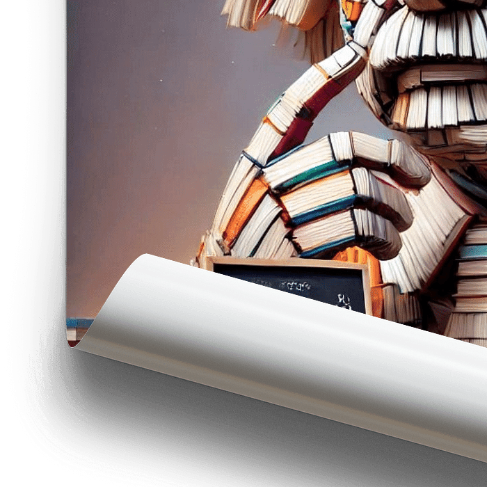 Deze fascinerende digitale poster combineert kunst, kennis en creativiteit op een unieke manier: De beroemde figuur van Albert Einstein, gevormd uit gestapelde en zorgvuldig gerangschikte boeken, wordt hier een symbool van intellect en inspiratie. De…