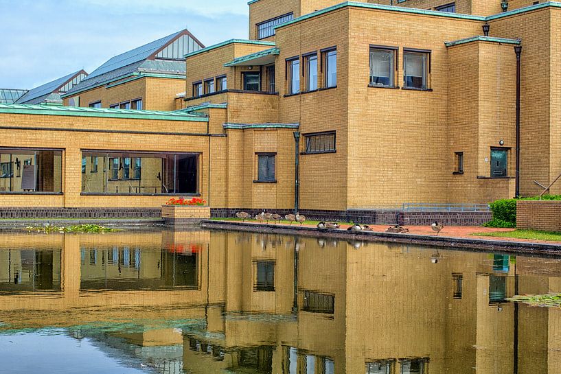 Kunstmuseum in Den Haag weerspiegeld in de vijver van Patricia Hofmeester