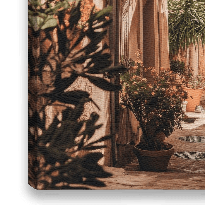 Een betoverende doorgang, omzoomd met zacht verlichte muren en bloeiende planten, leidt direct naar het glinsterende water. Het warme, gouden kleurenpalet en de zachte gloed van het licht geven dit steegje een vleugje mediterrane idylle, terwijl de zachte geur van de zee in de lucht hangt. Uitnodigend en mysterieus tegelijk, doet het…