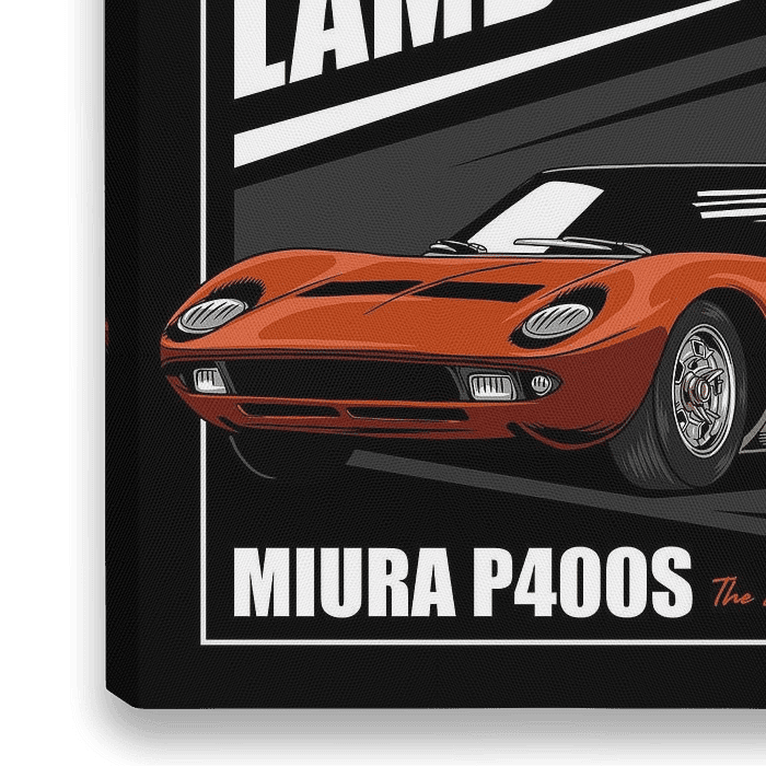 Koop dit Popart kunstwerk Lamborghini Miura P400S Auto van Adam Khabibi als print op canvas, aluminium dibond, (ingelijste) fotoprint, behang en ArtFrame. Voor jou op maat geprint in Fine-Art kwaliteit.