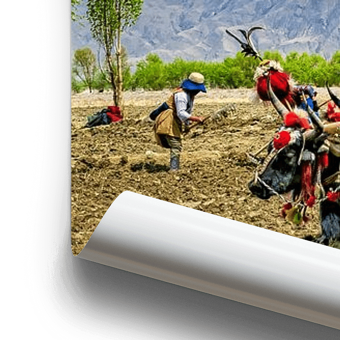 Landarbeid met gebruikmaking van jaks, Tibet.