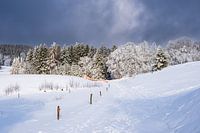 Landschap in de winter in het Thüringer Woud bij Schmiedefeld am Rennsteig.