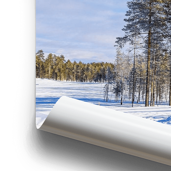 Koop dit landschapskunstwerk Landschap met sneeuw en bomen in de winter in Kuusamo, Finland van Rico Ködder op canvas, aluminium dibond, (ingelijste) fotoprint, behang en ArtFrame, op maat geprint in Fine-Art kwaliteit.