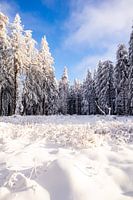 Koop dit landschapskunstwerk Langlaufen in het besneeuwde Thüringer Woud bij Floh-Seligenthal - Thüringen - Duitsland van Oliver Hlavaty op canvas, aluminium dibond, (ingelijste) fotoprint, behang en ArtFrame, op maat geprint in Fine-Art kwaliteit.