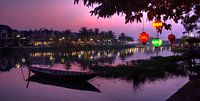 Na zonsondergang kleurt de lucht in Hoi An geweldig paars en zorgen de prachtige lantaarns voor een uniek sfeerbeeld van deze geweldige plek aan de Thu Bon rivier.