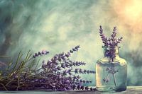 Breng de serene schoonheid van de natuur naar binnen met deze prachtige lavendel in een glazen fles. Perfect voor op tafel, bureau of vensterbank.