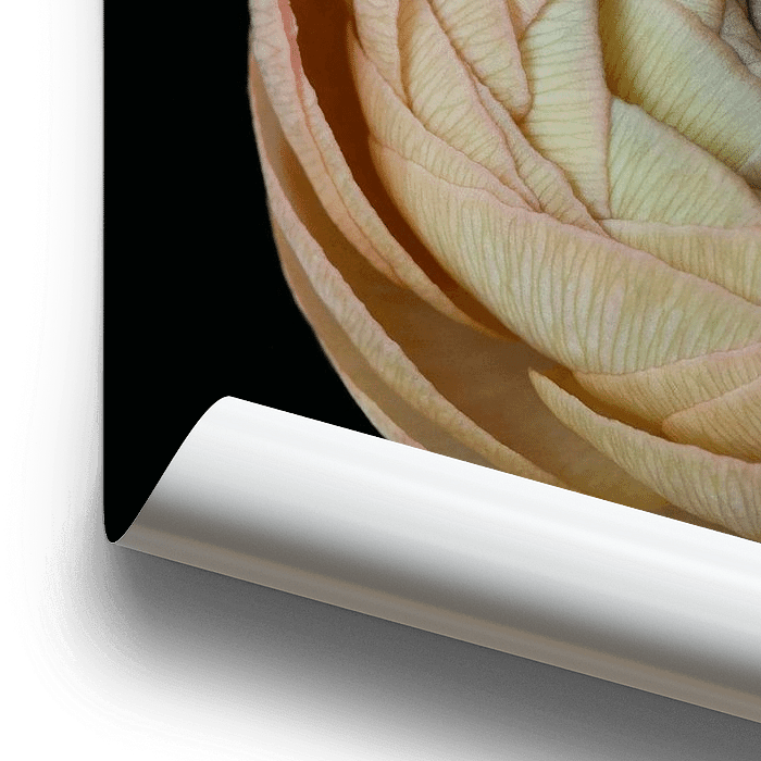 In deze verstilde close-up onthult de ranonkel haar ware karakter: een meesterwerk van geduld en perfectie, gevormd door de natuur zelf. Laag voor laag vouwen de zijdezachte bloemblaadjes zich naar binnen, als een zorgvuldig bewaakt geheim.