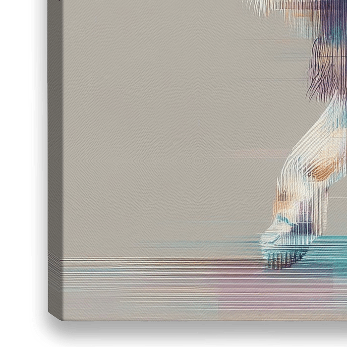 Leeuw Abstract - Op dit dieren schilderij zie je een abstracte leeuw met kleurrijke lijnen en vormen die zijn kracht en beweging vastleggen, terwijl de zachte achtergrond zijn levendigheid accentueert.