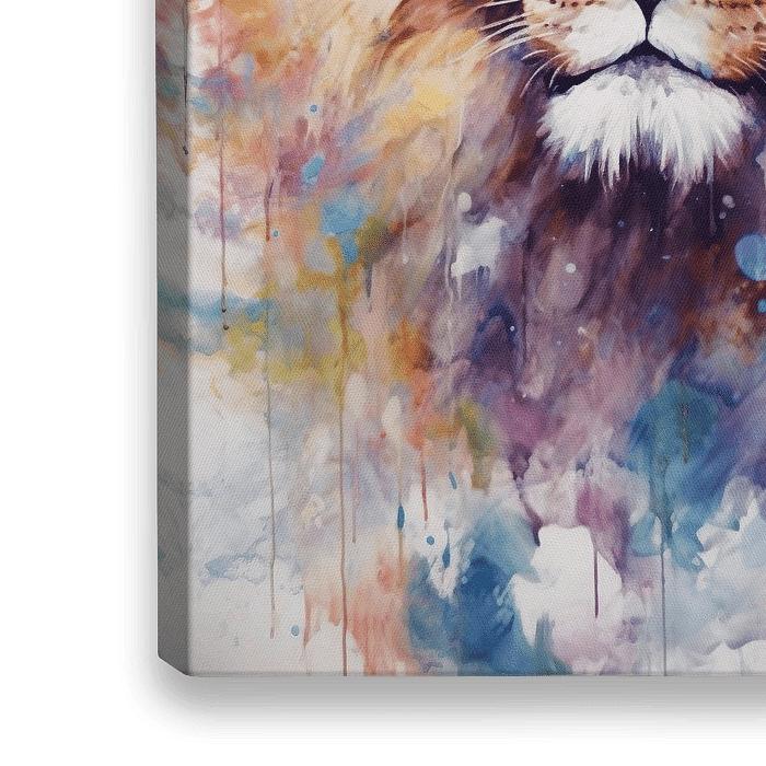 Portret van een leeuw in de stijl van een aquarelschilderij.