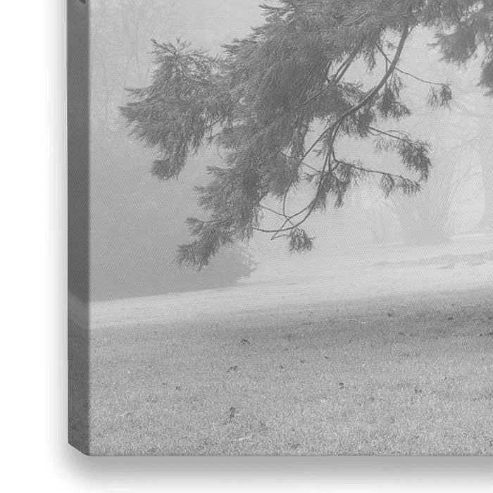 Panorama-opname in zwart-wit van twee mammoetbomen in dichte mist. Deze foto werd eigenlijk op dezelfde dag genomen als Mr Sandman, maar op een heel andere plaats. Hier was de mist dicht, maar veel helderder en ik heb lang moeten wachten om een foto te maken van deze reusachtige sequoia bomen die ik al ken sinds mijn prille jeugd. Mijn…