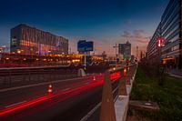 Het nieuwe ROC gebouw en het Centraal station van Leiden in ochtendgloren. Zelfs op dit tijdstip is het druk in de tunnel van de Schipholweg. De stad ontwaakt en maakt zich op voor de komende dag.