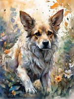 Koop dit bloemen kunstwerk Lentebries met een Border Collie: Een Aquarel van Speelse Vreugde van Retrotimes als print op canvas, aluminium dibond, (ingelijste) fotoprint, behang en ArtFrame. Voor jou op maat geprint in Fine-Art kwaliteit.