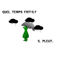Cartoon. The weather forecast … What’s the weather like? It’s raining. (French)