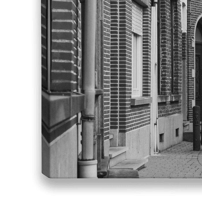 Gezicht op een schilderachtig oud straatje aan de achterkant van de Sint-Bartholomeuskerk in Geraardsbergen, Oost-Vlaanderen, België. De stad ligt in de Denderstreek, in de Vlaamse Ardennen.