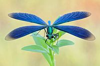 Beautiful Demoiselle / Blauflügel-Prachtlibelle ( Calopteryx virgo ) shows details of its wings, wildlife, Europe.