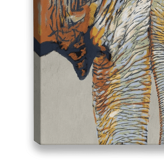 Twee olifanten kijken elkaar diep in de ogen en tonen hoeveel ze van elkaar houden. De levenslange band tussen een ouder en kind hebben olifanten en mensen met elkaar gemeen. Dit is een werk waar je eindeloos naar kan kijken vanwege de emotionele kracht, de natuurlijke kleuren, maar ook de details die steeds meer op gaan vallen. Je ziet bijvoorbeeld het leeftijdsverschil tussen de olifanten goed door de huid en de lach.